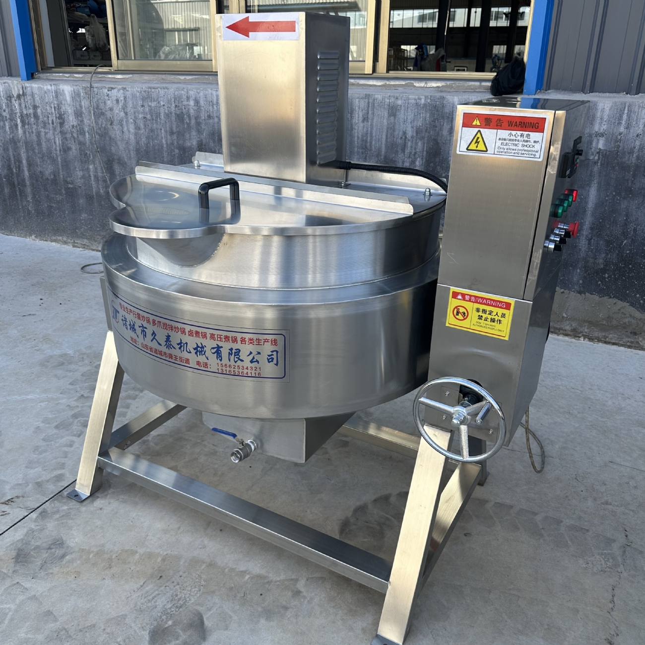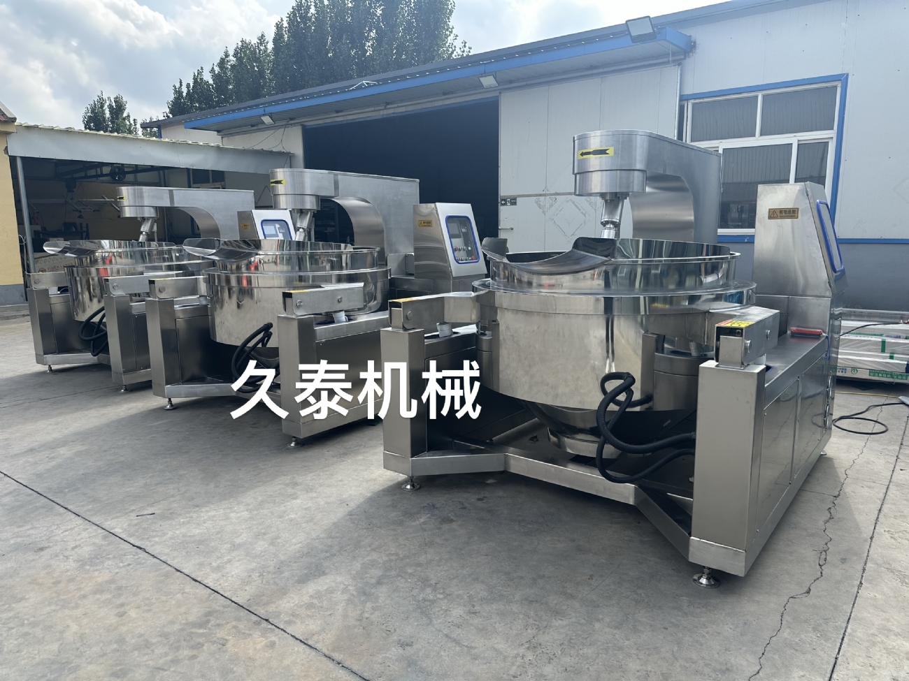 攪拌炒制常用的就是全自動行星攪拌炒鍋,它集加熱攪拌于一體,物料炒制完成后自動抬臂、自動液壓90°翻鍋出料,有燃?xì)饧訜帷⒄羝訜?、電磁加熱等加熱方式,使用方便,?yīng)用廣泛,多用于各類醬料、火鍋底料、大型食堂炒菜等。